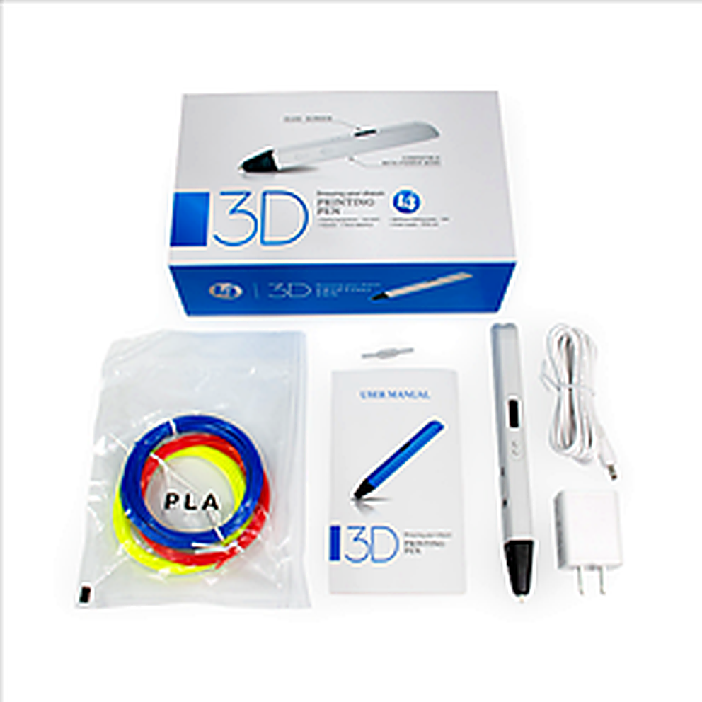 A device for creating three-dimensional objects by manually extruding heated plastic. Colors: Blue, White, Purple, Yellow Input Voltage/Current: DC5V, 2A Applicable Consumables: 1.75mm ABS or PLA Consumable Melting Point: ABS 220℃, PLA 190℃ Temperature Range: 130~230℃ Temperature Adjustment: Button adjustment Speed Adjustment: Slide button stepless speed adjustment Screen: OLED Pen Shell Material: Plastic Nose Material: Ceramic Nose Diameter: 0.7mm Accessories: 3D Printing Pen *1, Power Adapter *1 (European Standard), USB Cable *1, Instruction Manual *1 (English), Repair Tool *1, 3-Color 9-Meter PLA Consumables *1 Packaging Dimensions and Weight: Pen Dimensions: 175(L)x17(W)x20(H)mm; Net Weight: 45g Color Box Dimensions: 205*132*72mm; Gross Weight/Box: 0.4KG Outer Carton Dimensions: 530*425*370mm; Quantity/Carton Quantity: 40pcs; Weight/box: 17kg