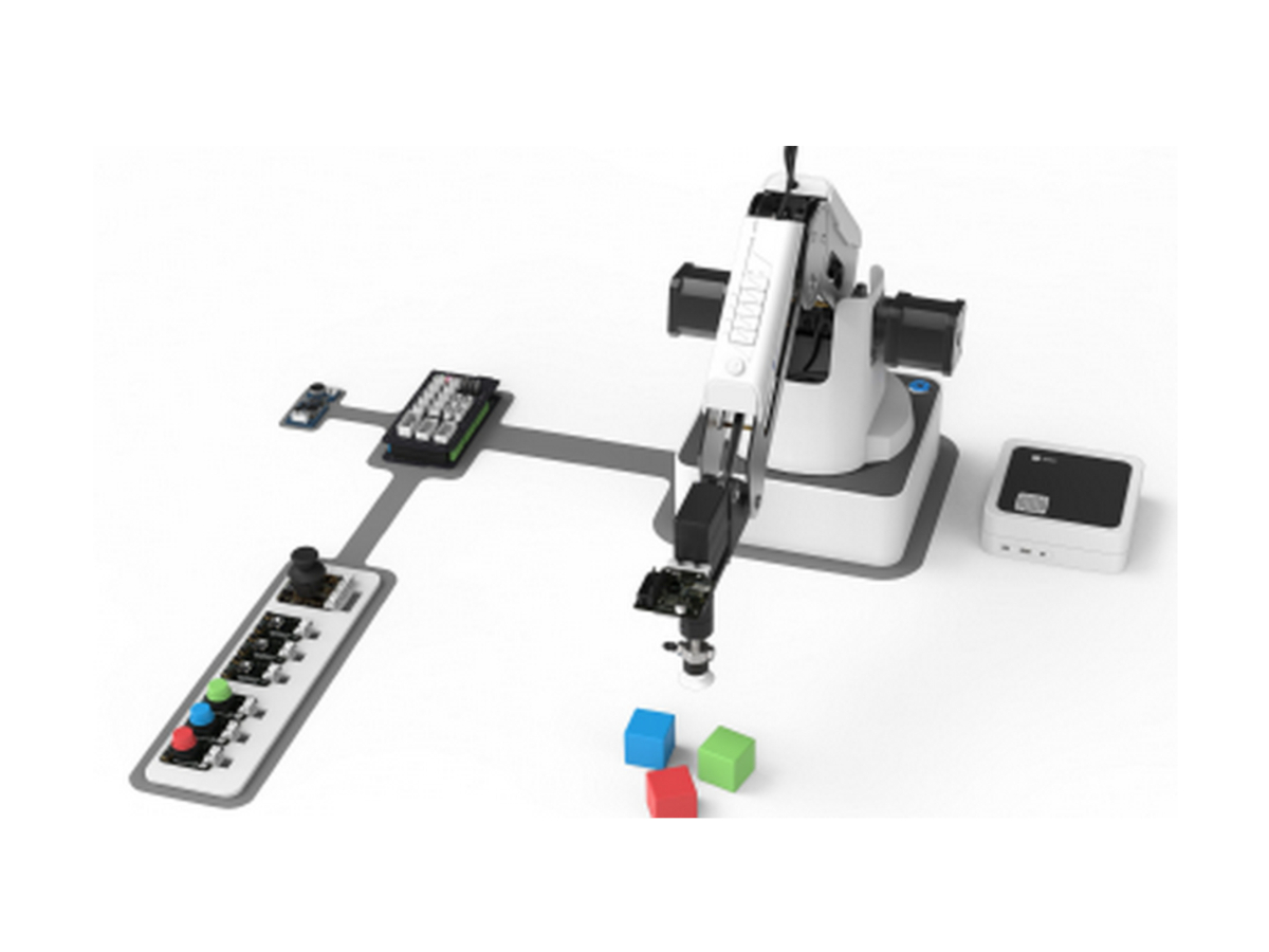 As an entry-level AI learning package, the AI Basic Kit for DOBOT Magician includes an Arduino Mega 2560 control board, LED indicator, joystick, switch button, and voice and vision recognition modules. We offer multiple courses to help students control the robot manipulator through programming and easily gain basic knowledge of AI, thereby cultivating their innovative thinking and creative robotics culture.