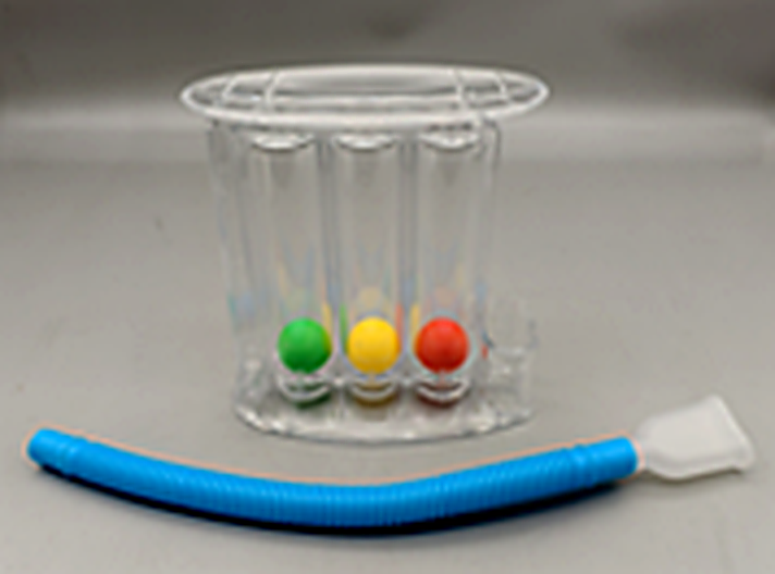 SpirometerThe respiratory trainer consists of a mouthpiece, a main inspiration capacity chamber, indicator balls, and an air intake tube. It is used for respiratory training: exercising the diaphragm and intercostal muscles to enhance lung inhalation capacity and endurance.Style: Inverted design for both blowing and suckingInhalation capacity: 600CC/900CC/1200CC per secExhalation capacity: 1000CC/2000CC/3000CC mlMaterial: Shell (PS), balls and tube (PP)Dimensions: 17*14.5*7cm