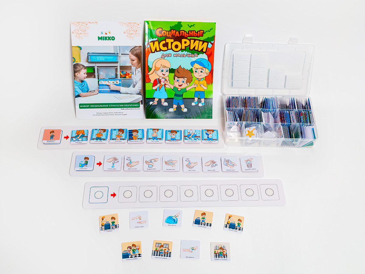 The “Visual Support. Boy” materials kit is designed for children who benefit from relying on visual cues throughout the day. The kit functions as a kind of “navigator” for the child, translating abstract concepts of time, rules, and emotions into an accessible visual language. The use of visual schedules and First–Then sequences creates a predictable environment, reducing anxiety related to uncertainty and minimising challenging behaviour during transitions between activities. Step-by-step algorithms (action sequences) enable the child to complete daily living and learning tasks without constant verbal reminders from adults, fostering independence and confidence.